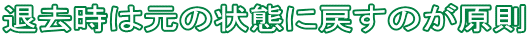 まぁ要は、退去時には明渡しまでに初めの状態に戻しておいてね、ということです。