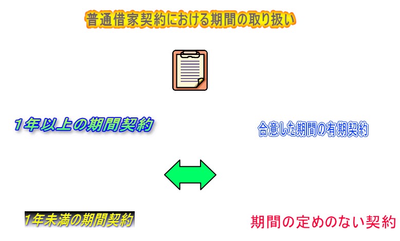普通借家契約の場合、期間が1年未満の契約については有期契約ではなく、